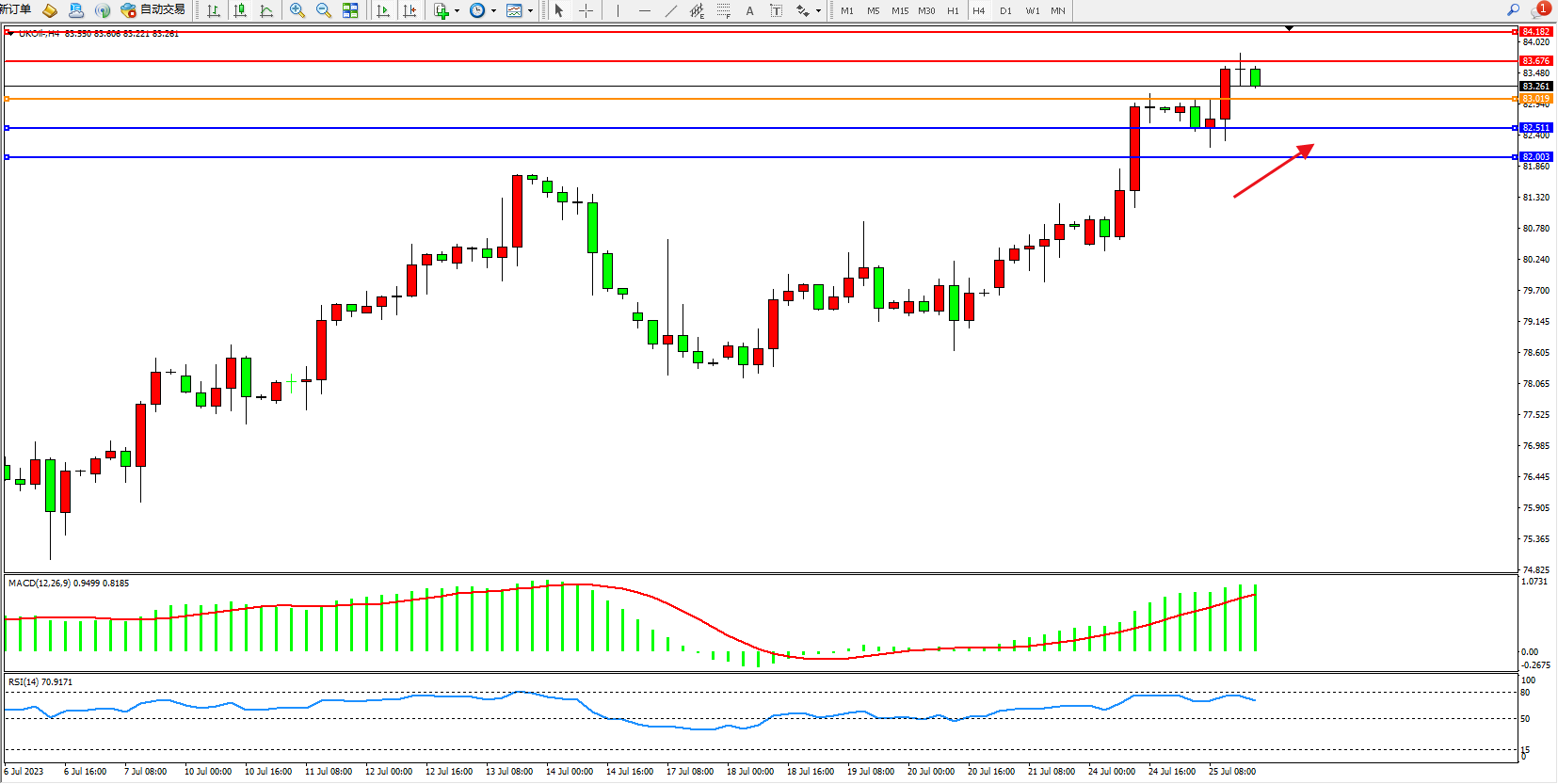 布油维持83.261附近震荡,石油输出国组织(OPEC)和俄罗斯等盟友(OPEC+)减产,供应预计将收紧。中国承诺加大对经济的政策支持,重点是提振内需。油价短期内可能会进一步上涨。