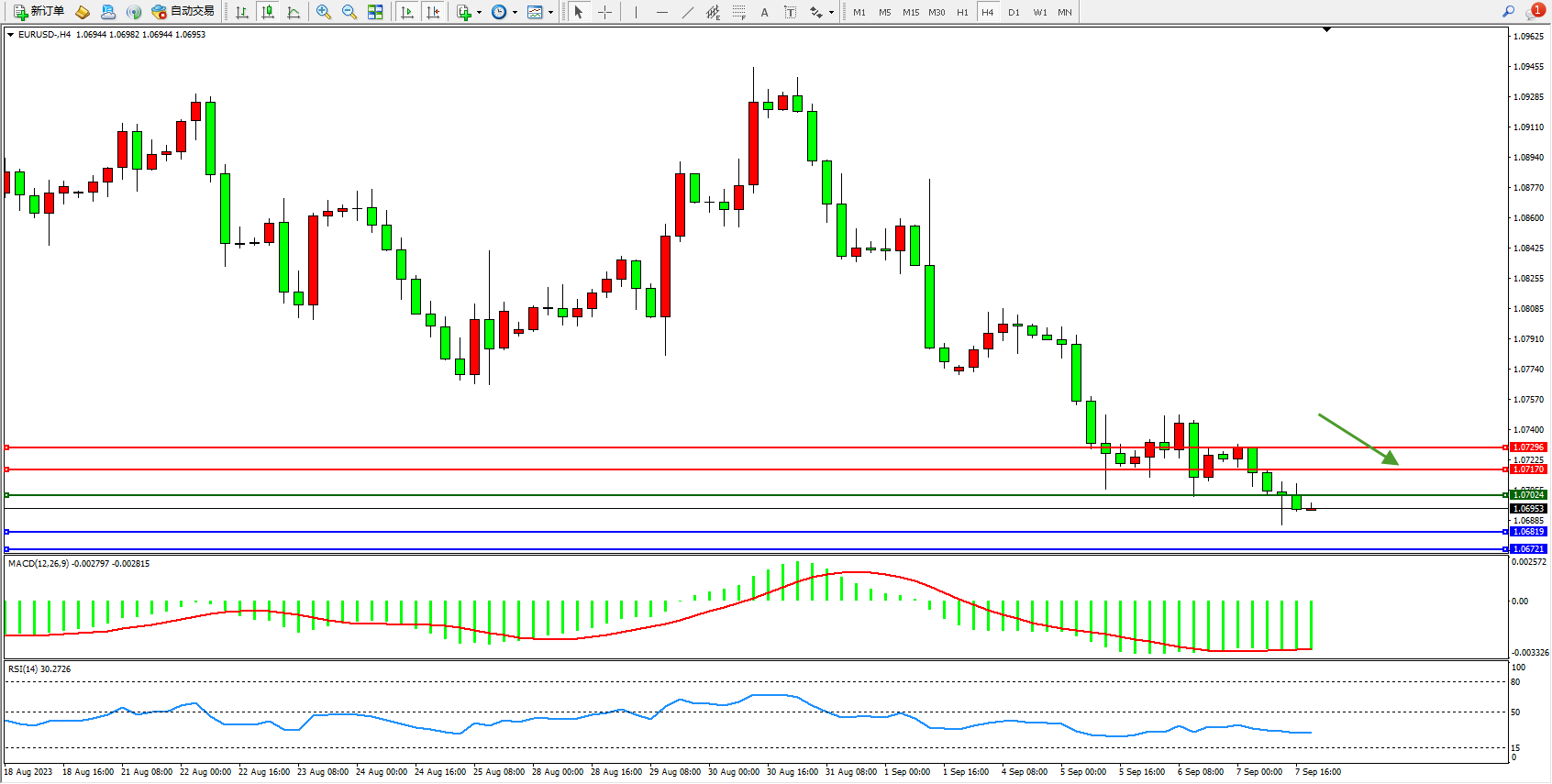 交易策略:1.07024下方看跌,目标1.06819  1.06721