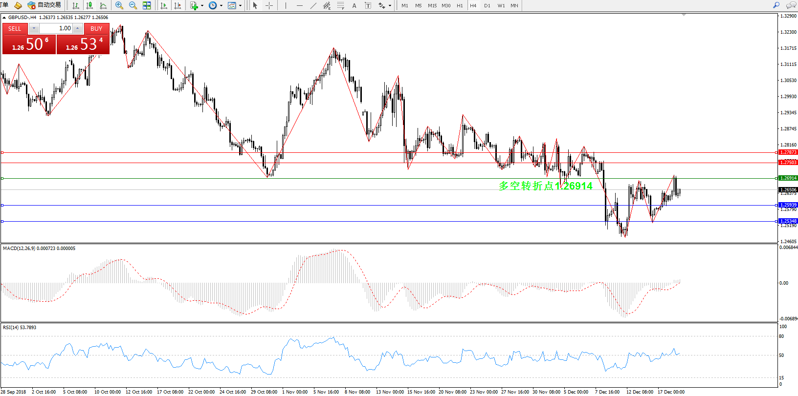 交易策略:1.26914上方看涨,目标1.27503、1.27873