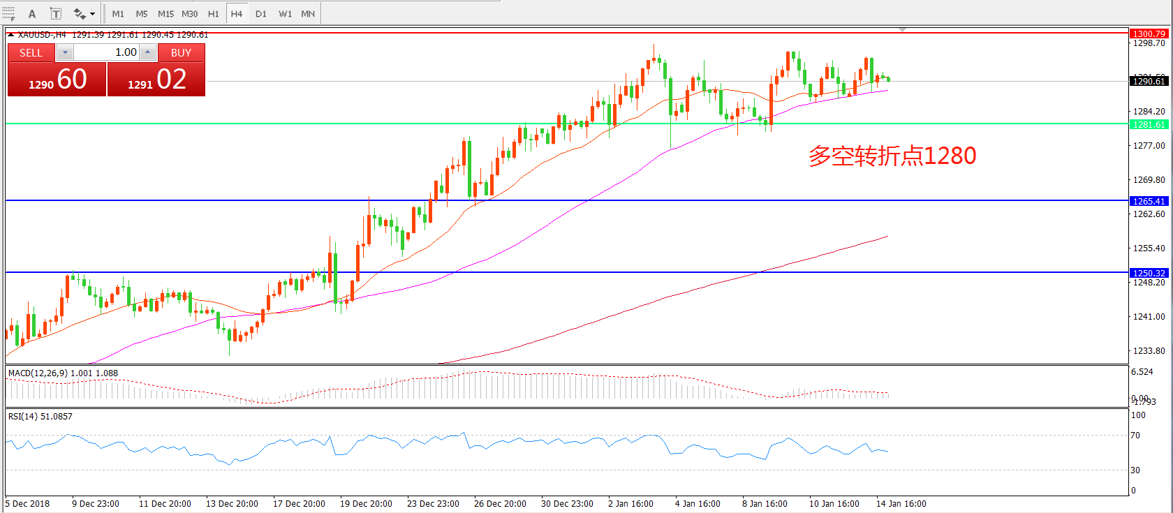 英国自2016年3月29日公投退出欧盟后,其命运令人深感不确定,因为议会很可能在周二晚上拒绝接受梅的提案,这是至少半个世纪以来英国最严重的政治危机。如果特蕾莎梅的提案失败且政府未能在未来三周内通过任何修改后的版本,那么议会委员会的高级立法者可能会提出另一个英国退欧计划。北京时间周三凌晨3:00,英国选民可能会就首相特蕾莎梅的最新的英国退欧计划进行投票,将整个英国退欧局势置于严重的动荡之中。现货黄金周一(1月14日)温和收涨,美市盘中最高上探至1295.85美元/盎司,但在触及日内高位后回落,短线走势较为震荡