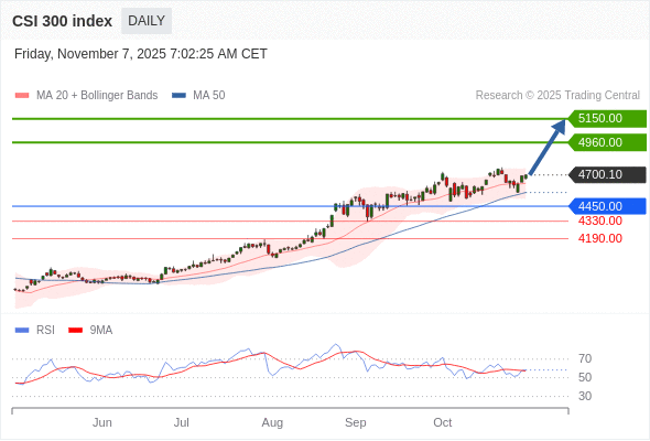 沪深300指数 短线: 看涨。
