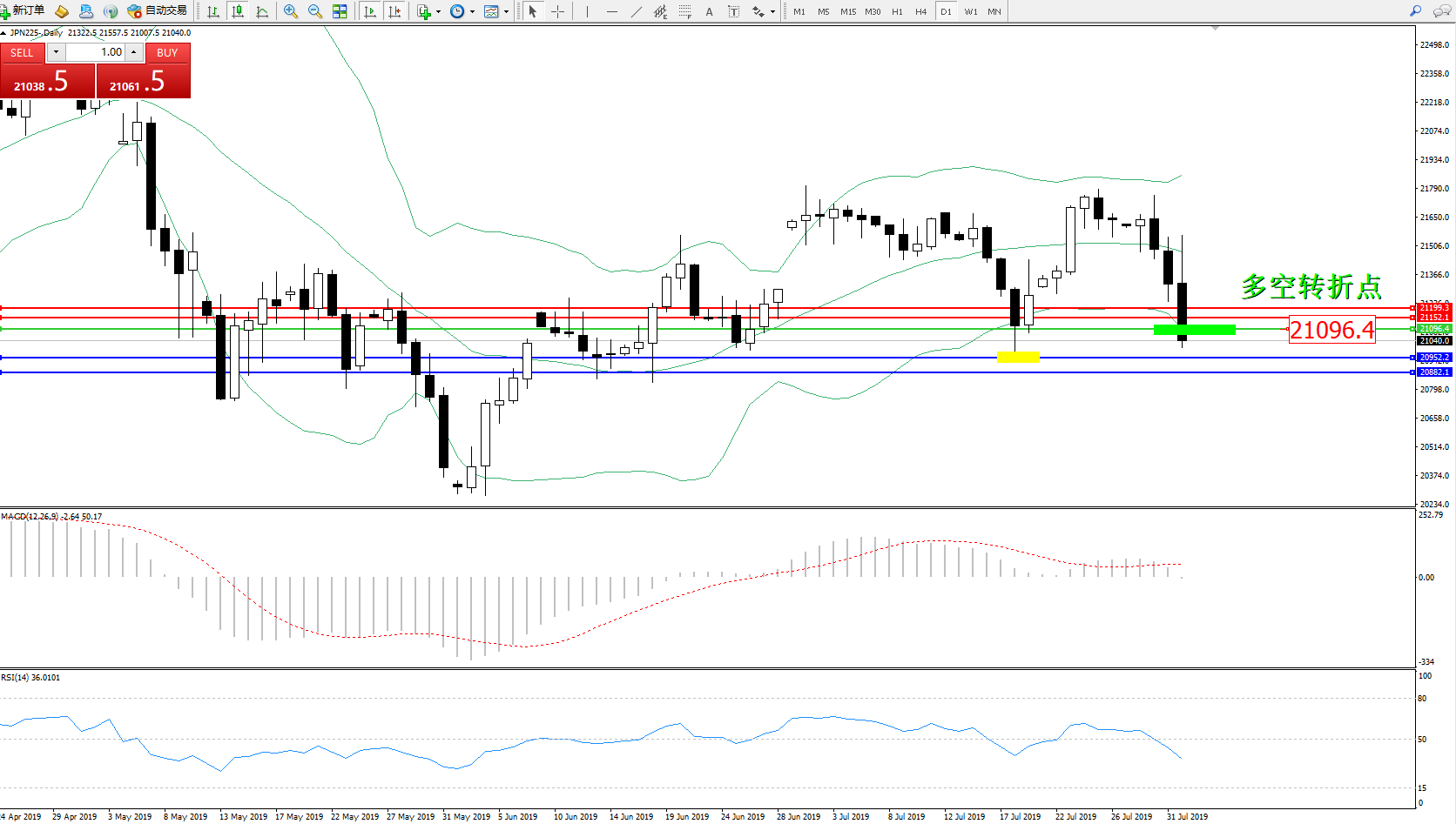 日经225指数8月1日(周四)收盘下跌22.03点,跌幅0.10%,报21499.50点。美联储降息25点,日本央行副行长雨宫正佳表示:不计划让市场提前消化日本央行的宽松政策。日本央行将致力让市场理解央行的经济评估、政策立场,而非提前暗示行动特朗普通过社交媒体发文,表示将从9月1日起对价值3000亿美元的中国商品加征10%的关税,这还不包括已对2500亿美元的中国商品征收25%的关税。