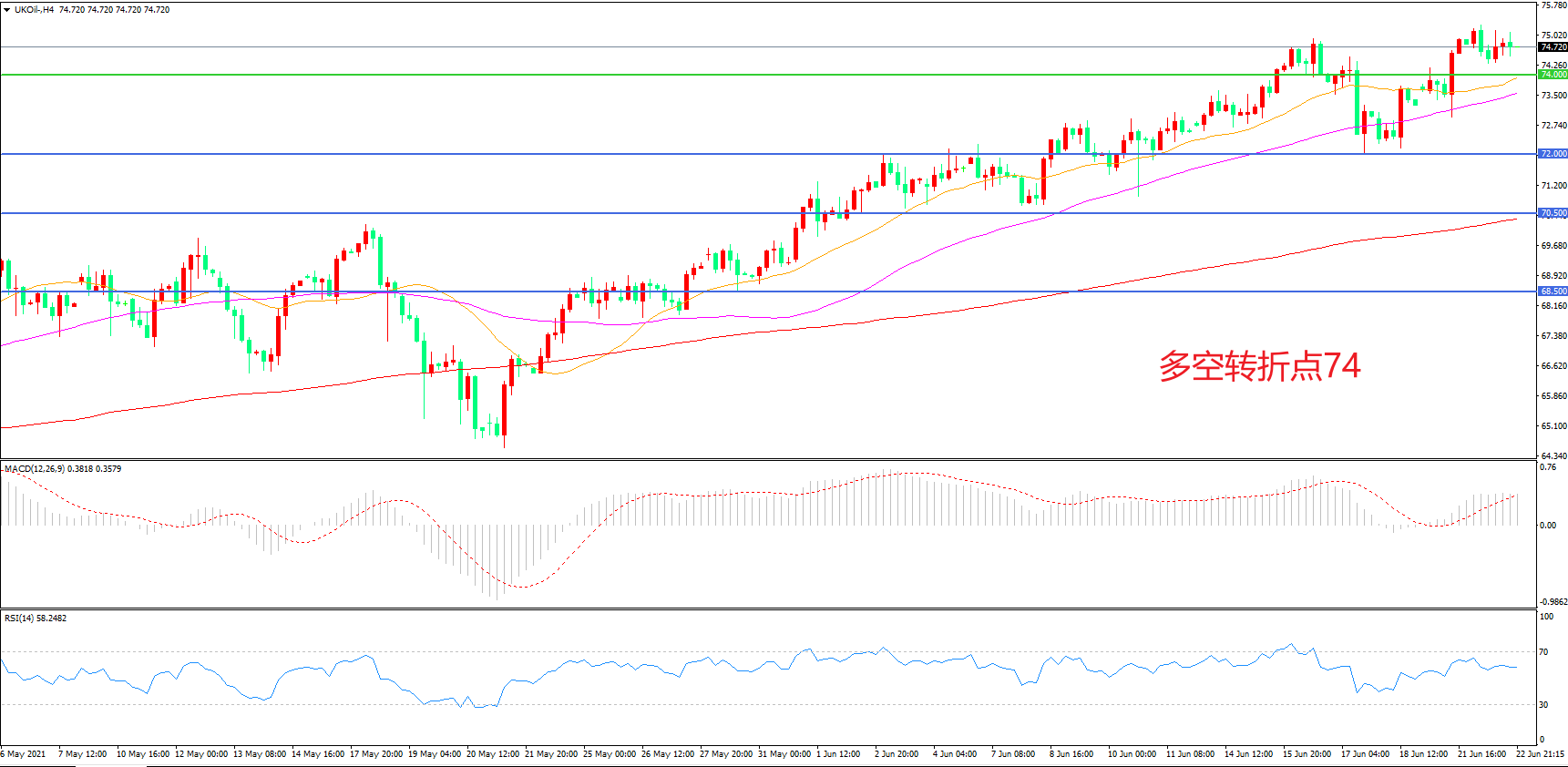 交易策略:在74.00之上看涨,目标77.00    80.00