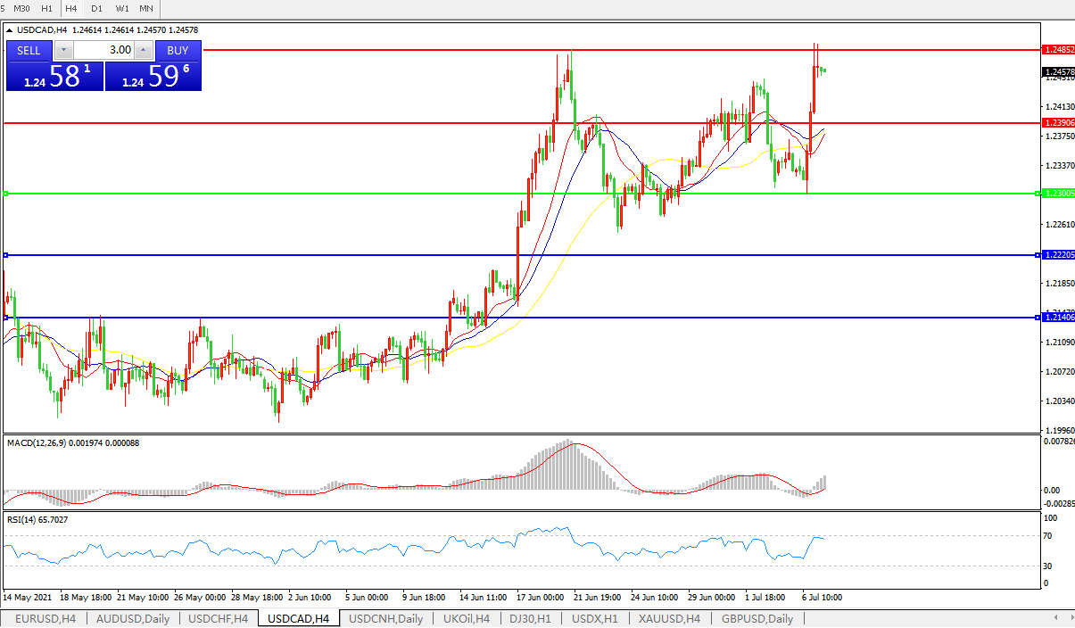 美元兑加元涨0.96%至1.2461;一度上涨1.2%至1.2495,彭博大宗商品指数跌幅高达2.5%,为6月17日以来的最大跌幅;该货币对的飙升还反映出交易员将今年早些时候建立的空头头寸平仓,这些空头仓位的建立初衷是为了利用经济增长/再通胀这种市场心态。
