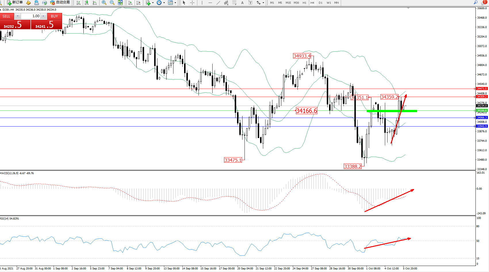 道琼斯指数10月5日(周二)收盘上涨312.48点,涨幅0.92%,报34315.40点;美股收盘,三大股指集体反弹,市场在非农就业报告公布前评估经济状况。大盘科技股领涨,投资者正焦急等待劳动力市场的最新数据,以寻找关于美联储下一步行动的信号。美国ISM服务业活动数据优于预期,可能使美联储继续向着宣布减码的方向前进。能源危机蔓延和美国债务上限问题陷入僵局的情况下,忧虑情绪不断升温。