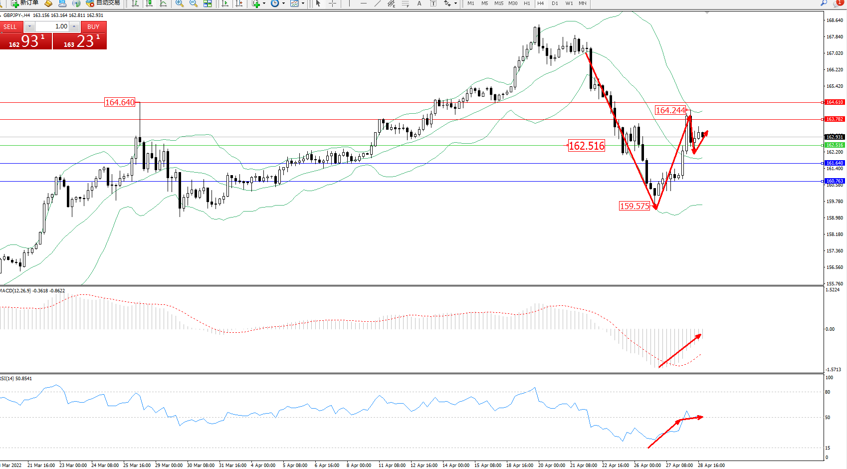 技术点评:空头动力延续布林带指标下轨附近持续下挫,低位抵达159.575附近节点后开始震荡反转上扬,触及布林带指标上轨164.244附近节点后遇阻震荡,短期多头动力有继续向上移动态势,布林带指标呈收口走势持续平移,MACD指标处于空头区域维持震荡上移,RSI指标处于空头区域维持震荡上移至50均衡线附近节点开始徘徊;