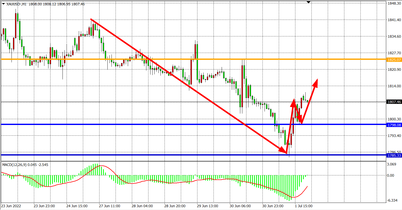 交易策略:在1798.00之下看跌,目标1785.00          1770.00