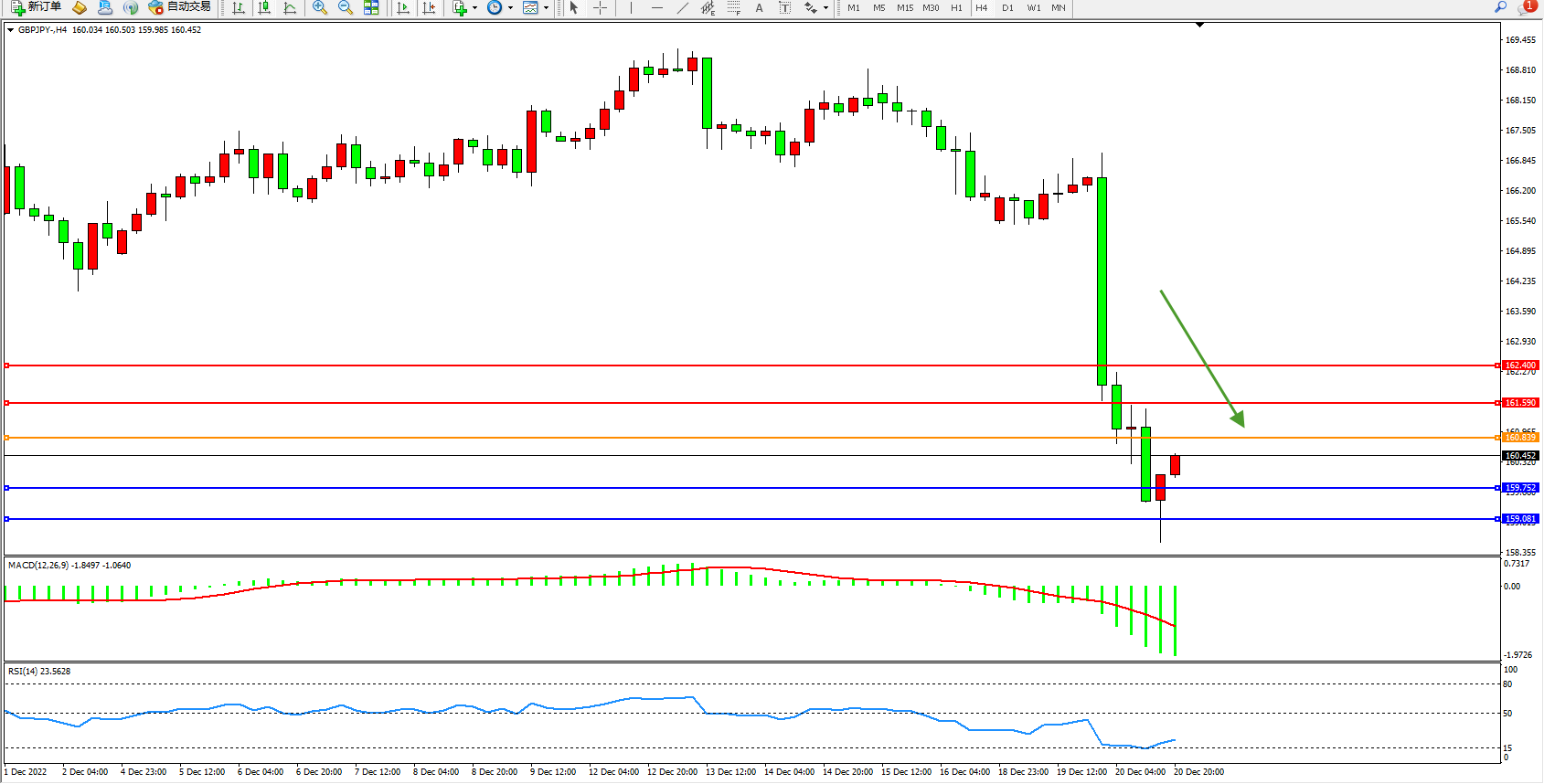 英镑兑日圆维持160.476附近震荡,英国经济衰退将是“轻微但持久的”,预计2023年英国GDP将萎缩1.3%。到2024年经济可能只有部分复苏,预计将增长0.2%。