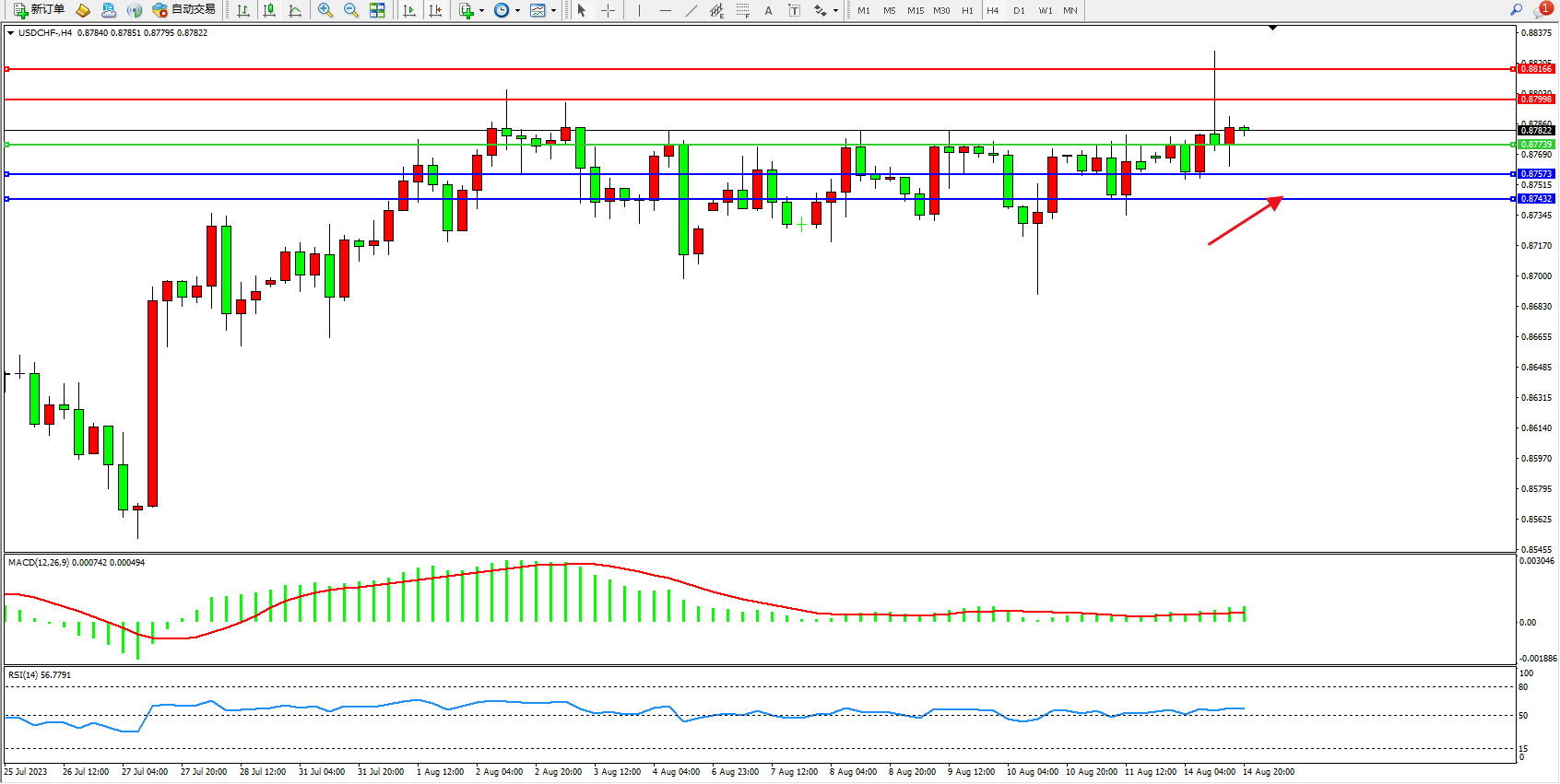 交易策略:0.87739上方看涨,目标0.87998  0.88166